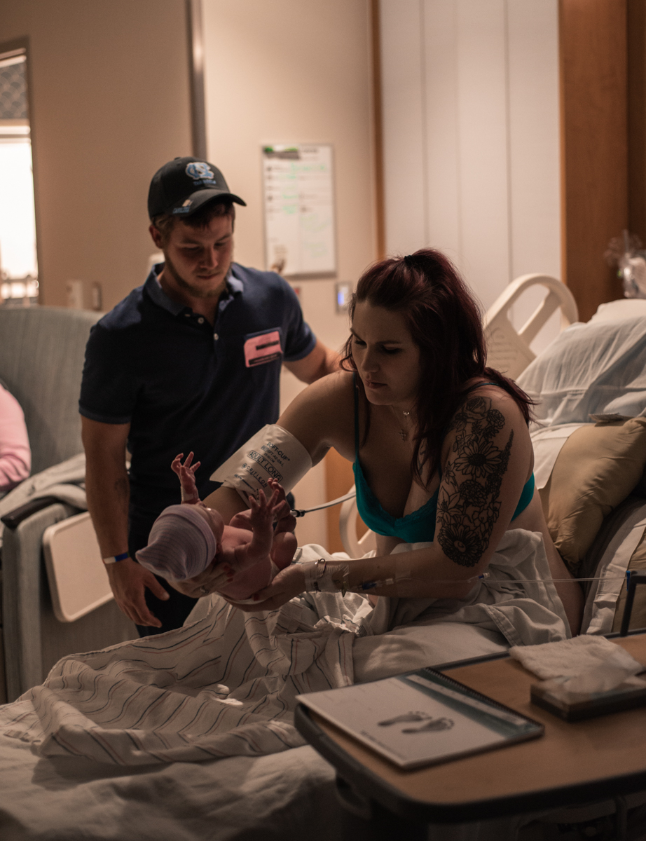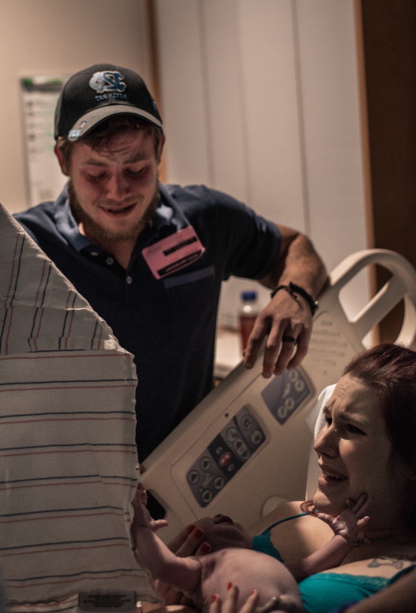 Close snuggles, skin to skin, holding their baby for the very first time. There were tears, and prayers, and laughter, and peace.