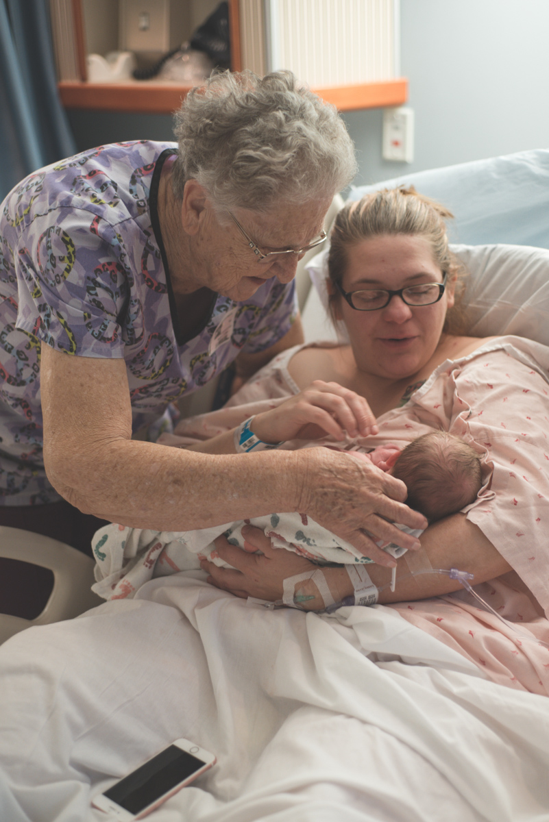 Dad had just come off a long work shift, and he was overjoyed to see and hold his child. Mama was just SO happy and present, she really owned her experience and didn't take any of it for granted. And the bond between mama and her Nana, was enchanting. I love when grandmothers, Nanas, aunts, sisters ect. are an active part of birth and new life, it feels ethereal, like I am getting to witness the way things once were when birth was a rite of passage and women birthed with other women surrounding her. Tradition, compassion, and a strong sense of community. Something I would love to see our society return to. The way Nana tenderly checked baby over and held her close, and helped mama with the latch, it was all amazing.