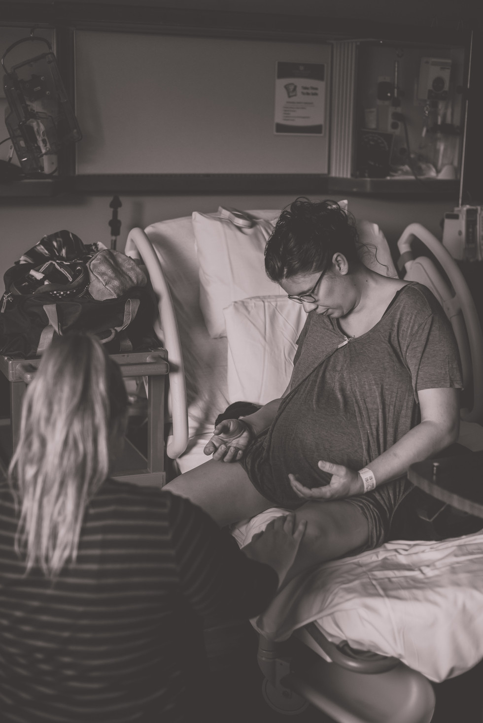 The staff on this day was INCREDIBLE. The nurses ran back and forth with coffee pots, and sterile bowls of every shape and size sloshing full of all the hot water they could carry. The hot water in the whole birthing unit had been shut off completely for the day- and of course no one told the nurses this would be the case beforehand. They were determined to give this mama the water birth she dreamed of, and worked tirelessly to fill the tub with heated water from the coffee machines and even the microwave at one point. They removed the bathroom shower curtain and taped it to the tub to keep in the warmth while they waited for the hot water to reheat during each run.