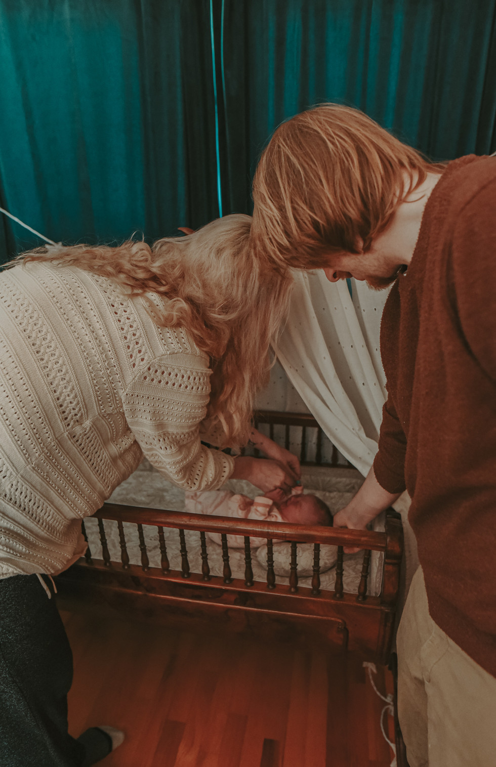 A precipitous home birth, the birthing mother was held. Not just by her home, her intentions, and her husband, but by her own mother, who happened to be a midwife as well. It was so lovely, to step into this postpartum space in the following days, and document these ethereal moments of soft touch, tender learning, and beautiful first time magic.